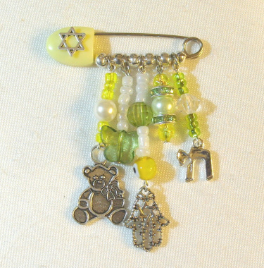 This is a traditional Jewish item, often attached to a bassinet, crib or stroller. Includes a "Chai" charm, "Evil Eye" bead, a hamsa charm, and a Teddy Bear charm. This would be a thoughtful gift and a keepsake item. It would make a great baby shower gift!