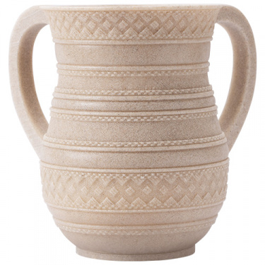 With the look of Carved Stone this Washing Cup by Art Judaica has two handles for easy use.